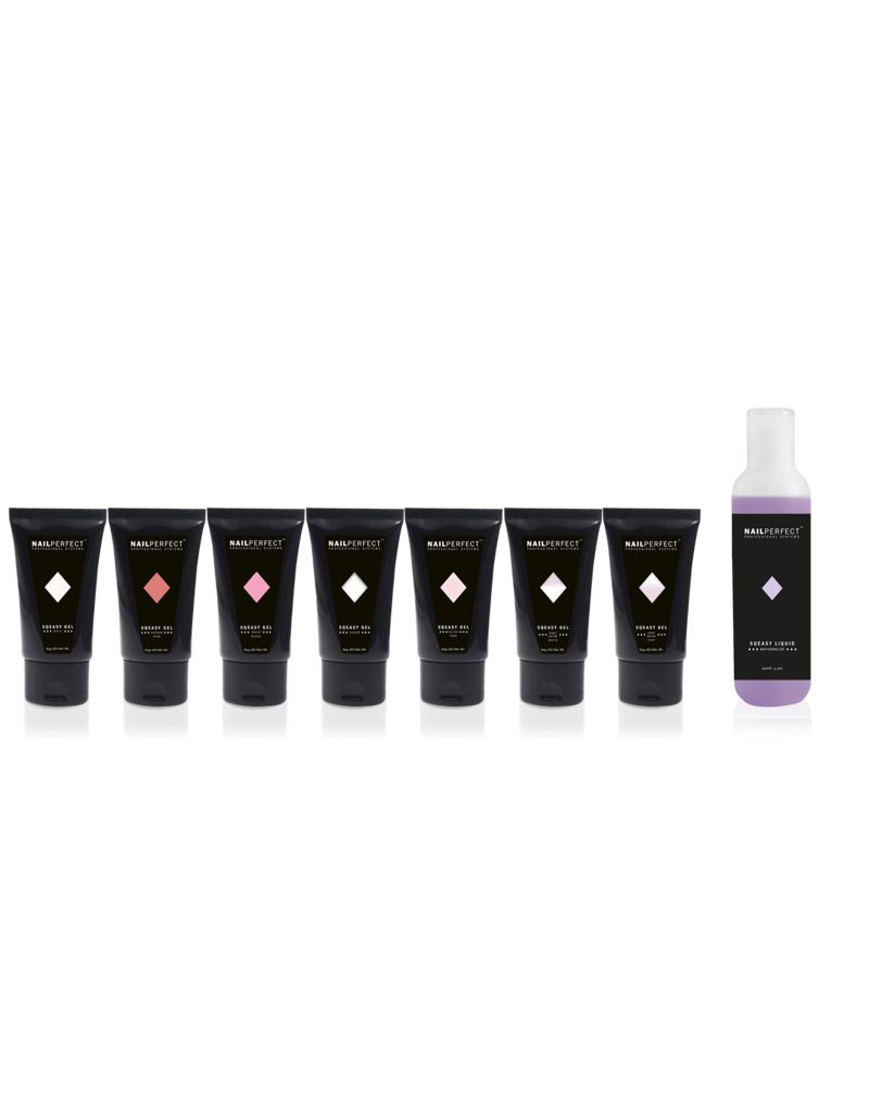 NailPerfect Sqeasy Gel Cover Pink, perfekt til fransk. Gelen kombinerer akrylens styrke med geléens fleksibilitet og giver dig fremragende kontrol under arbejdet. Anvendes sammen med Sqeasy Liquid for optimal arbejdsevne og jævn fordeling.