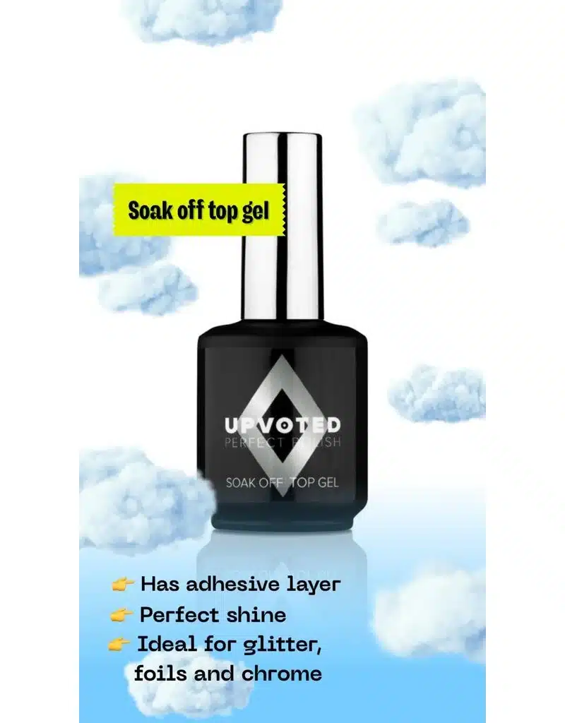 UPVOTED Soak Off Top Gel giver neglene en glat og højglans finish og beskytter Soak Off Gel Polish mod at falme eller blive mat.